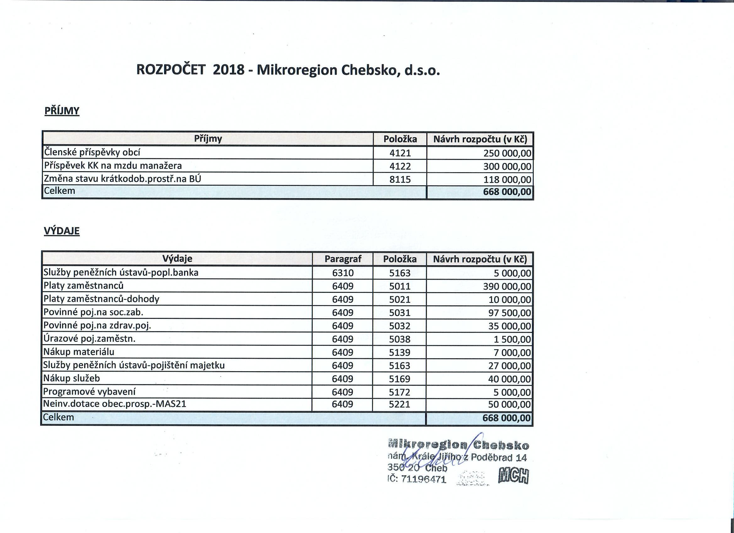 Rozpočet 2018 - Mikroregion Chebsko, d. s. o.