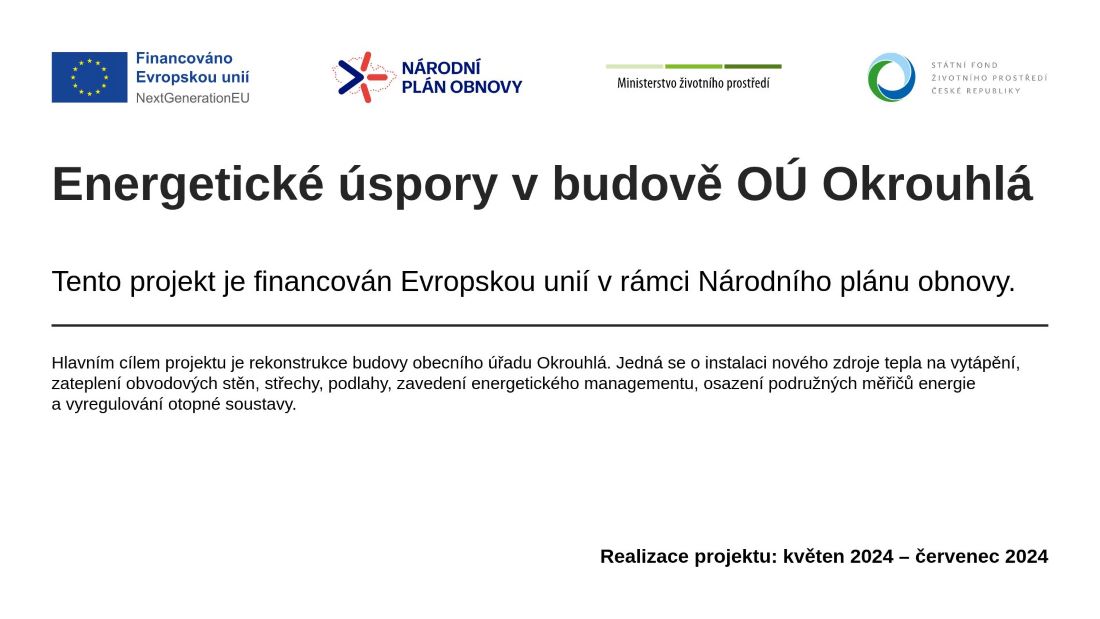 Obec OKROUHLÁ - Dotace - reg.č. 5211200233 - "Energetické úspory v budově OÚ Okrouhlá"