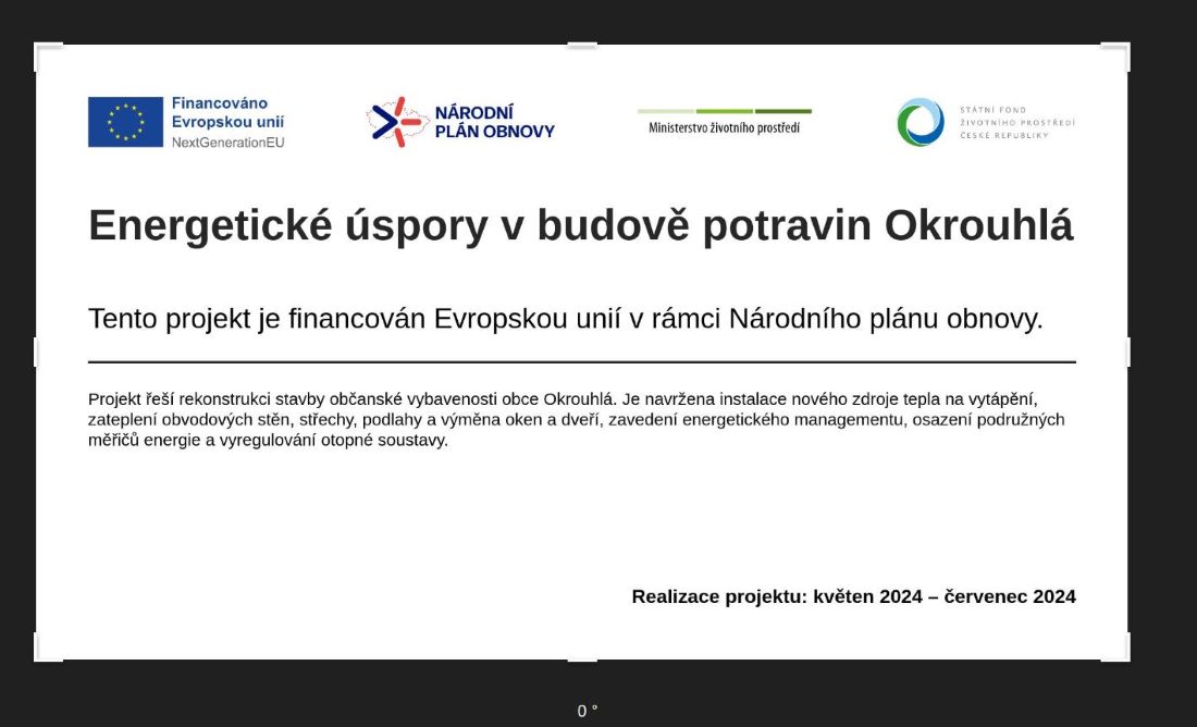 Dotace - reg.č. 5211200220 - "Energetické úspory v budově potravin Okrouhlá"